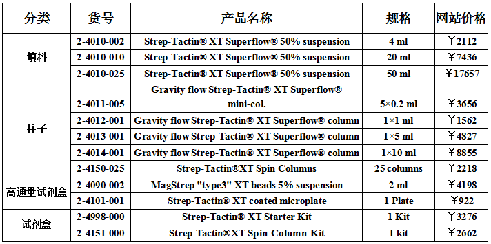 B、凡購買(mǎi)Strep-Tactin?系列產(chǎn)品,贈送一組Strep-Tactin?XT Trial Kit (Cat#2-4999-999)
