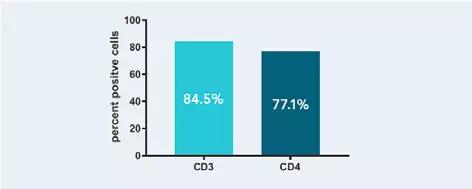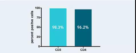 以Fab-TACS細胞分選重力柱分離CD3+及CD4+細胞,圖中為五次獨立實(shí)驗的平均分選結果。Fab-TACS科技能穩定的從全血中分選出多量的目標細胞。