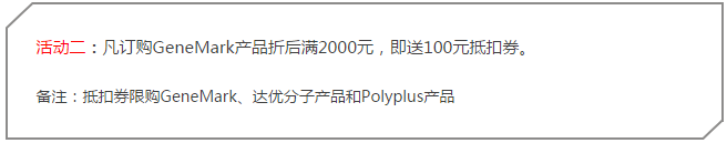 活動(dòng)一:凡購買(mǎi)GeneMark和達優(yōu)分子產(chǎn)品,折后滿(mǎn):