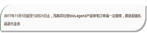 凡單筆訂購BioLegend全線(xiàn)任意產(chǎn)品達到一定金額即送超值禮品和代金券,使用代金券再次購買(mǎi)任意達科為代理產(chǎn)品可抵扣相應現金或直接兌換等值指定達科為代理產(chǎn)品,多買(mǎi)多得!