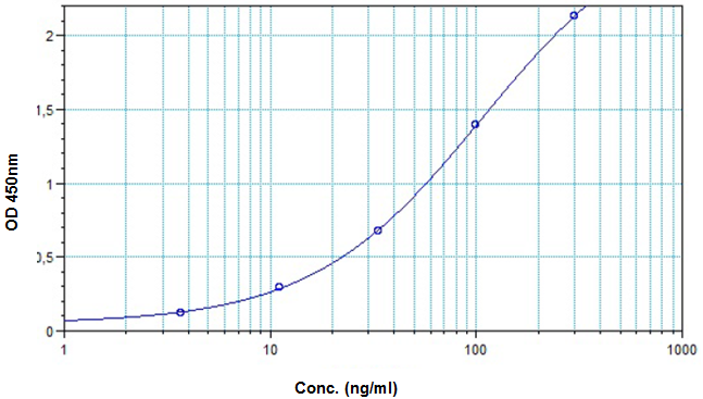 圖例:BioSim?利妥昔單抗ELISA試劑盒的標準曲線(xiàn)圖。(Cat.No. E4371)
