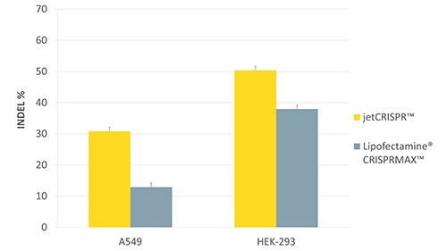 圖4: 在HEK-293細胞中,使用jetCRISPR?進(jìn)行快速可靠的基因編輯