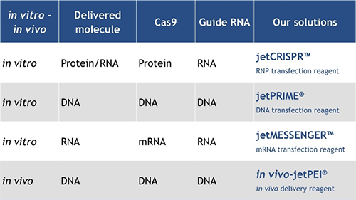 表1:專(zhuān)為CRISPR實(shí)驗設計的轉染試劑