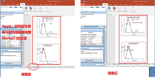 圈好門(mén)之后,選中單管Control版面,按照陰性細胞與陽(yáng)性細胞的位置調整Marker門(mén)的位置。