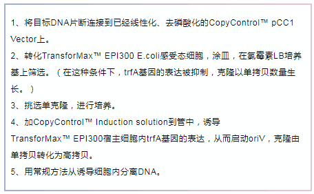 首先安利一下Epicentre的專(zhuān)利技術(shù)——CopyControl?克隆系統,能夠讓您共享單拷貝和高拷貝的優(yōu)點(diǎn)。CopyControl?克?。菏紫纫詥慰截愋问缴L(cháng),單拷貝可以確保插入穩定及成功克隆編碼基因序列;在需要的時(shí)候,通過(guò)誘導液誘導成高拷貝克隆,以便下游應用所需。這一系統可以用來(lái)構建PCR克隆,對于BAC,Fosmid文庫等大型質(zhì)粒格外有用。