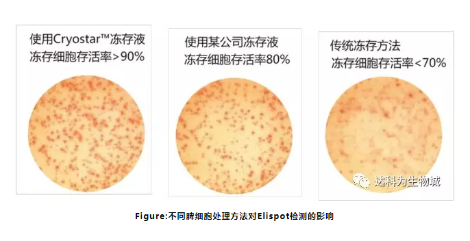 在 ELISPOT 檢測的應用中,往往需要用到凍存的淋巴細胞樣品作為檢測細胞。由于 ELISPOT檢測的是細胞的免疫功能,不僅僅需要保持細胞的存活率,而且還要保證細胞的功能不發(fā)生變化。傳統的細胞凍存方法通常是為了保存細胞株,對細胞存活率的要求不高,更沒(méi)考慮保持細胞原有的免疫狀態(tài),所以傳統的細胞凍存方法已經(jīng)不能滿(mǎn)足 ELISPOT 檢測的要求。