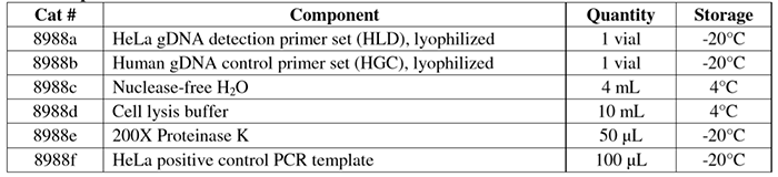HeLa細胞污染檢測試劑盒(HLCC)包括以下幾個(gè)組分: