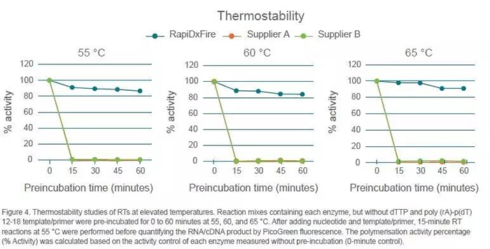 RapiDxFire耐高溫逆轉錄酶在高溫下表現佳