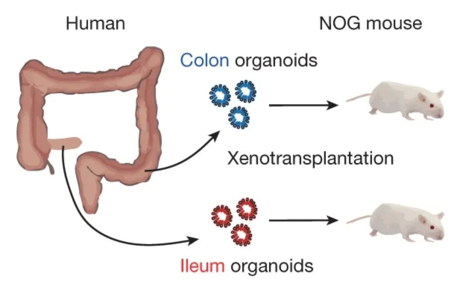 將人類(lèi)回腸或結腸類(lèi)器官移植到免疫缺陷(NOG)小鼠結腸