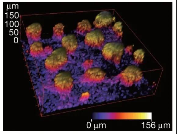 圖像以三維(3D)方式堆疊,并根據從下到上的距離來(lái)著(zhù)色。