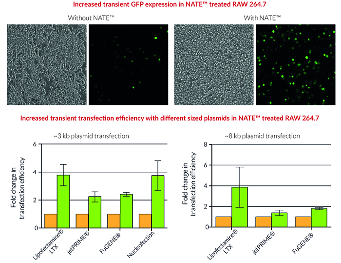 與常用的轉染試劑(如GeneXPlus,Lipofectamine?LTX和jetPRIME?),物理方法(電轉)以及慢病毒轉染等兼容;