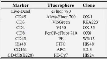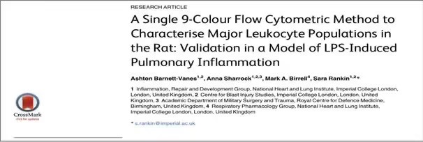 [2]Barnett-Vanes A, Sharrock A, Birrell MA, Rankin S. A Single 9-Colour Flow Cytometric Method to Characterise Major Leukocyte Populations in the Rat: Validation in a Model of LPS-Induced Pulmonary Inflammation. PLoS One. 2016 Jan 14;11(1):e0142520.