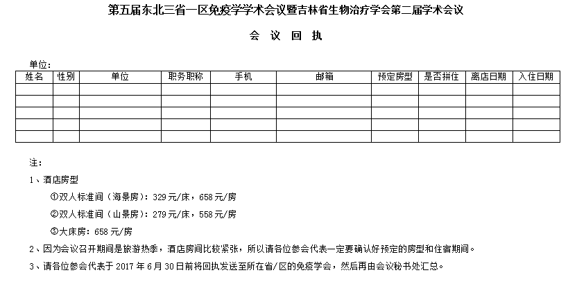 二、第五屆東北三省一區免疫學(xué)學(xué)術(shù)會(huì )議暨吉林省生物治療學(xué)會(huì )第二屆學(xué)術(shù)會(huì )議征文通知、會(huì )議費用、交通等詳見(jiàn)附件。